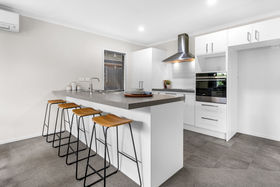 The open-plan kitchen, dining and living areas connect seamlessly, so everyone can spread out, allowing a calm, relaxing feel. A heat pump ensures year-round comfort through both Christchurch summers and winters.